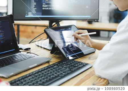 Professional development programmers are analyzing the information in documents to prepare them for programming on computers, Write information or code for the website, HTML, javascript, Software.