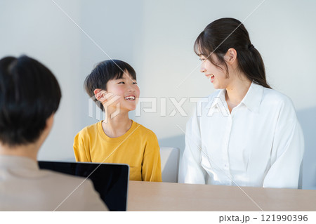 面談する親子と先生