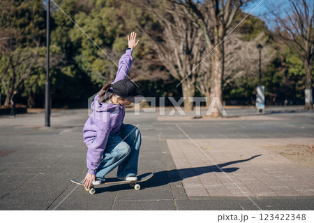 スケーターファッションの女性