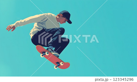 Dynamic Skateboarder in Action with Vibrant Colors and Bold Design Elements