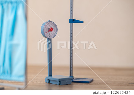Toy weight scale and stadiometer.