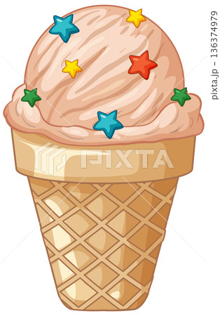 Pink Ice Cream Scoop in a Waffle Cone with Star Sprinkles