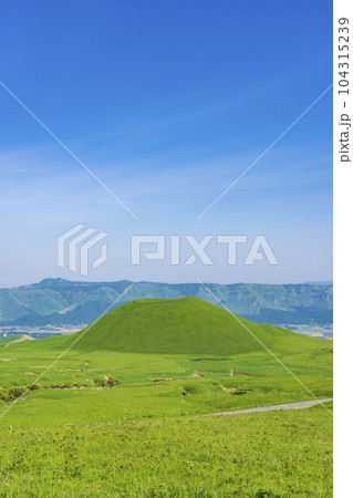 【熊本県】晴天の米塚と米塚草原(阿蘇山)
