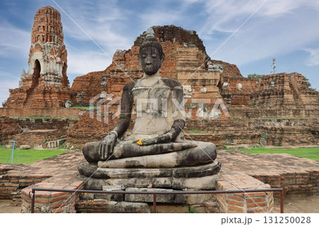 Ancient Buddha statue in Wat Mahathat, Ayutthaya Historical Park. It is a popular destination for tourists.