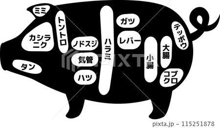 シンプルシルエットの豚の部位イラスト(内臓)