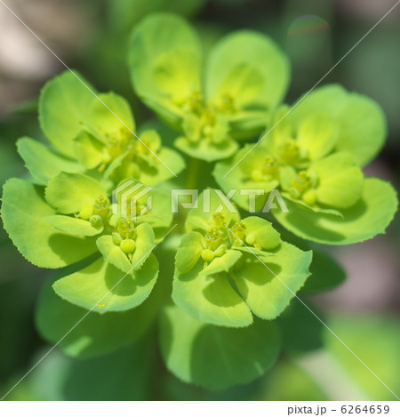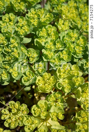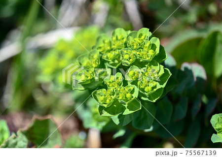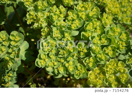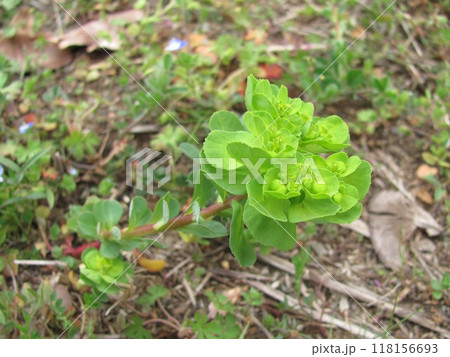 道端に群生する黄緑色の葉が輪生するトウダイグサ