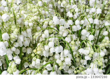 Spring in Europe. Fragrant thickets of delicate flowers. Lily of the valley in spring. Close up.