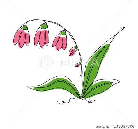 Lily of the Valley with Pendent Bell-shaped White Flowers Vector Illustration