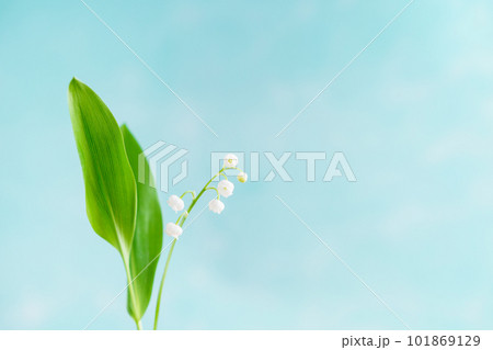 ナチュラルなスズランの花束と楽譜|ブルー背景