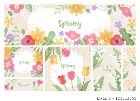 ひな祭りや桜などの春の行事や植物をイメージしたイラストのセット