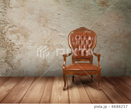 The interior is retro styled. wooden chair with blue cladding in the room.