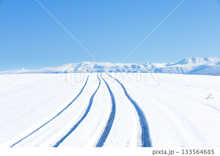 北海道_真冬の凍結道路の風景