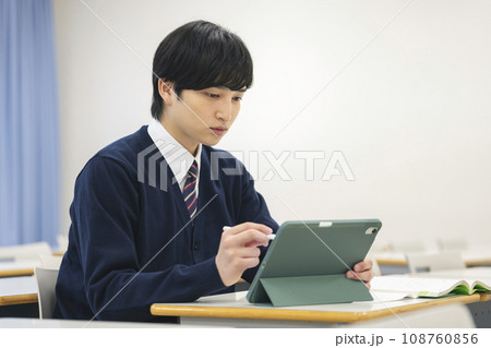 タブレットを使って学習する男子高校生 撮影協力:有明教育芸術短期大学