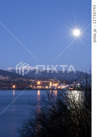 Night scene of downtown Vancouver in Stanley Park