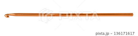 Golden metal crochet hook isolated on white background