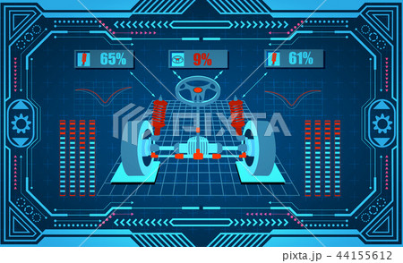 Car service. Graphic interface in a stylized frame. Diagnostic alignment of wheels, shock absorbers