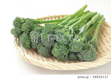 注意)背景の白に、小ゴミ小キズが残ります。スティックセニョール(茎ブロッコリー)、野菜。