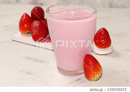 Strawberry smoothie fresh berries strawberries pink sunny background. The concept of healthy and natural food. Healthy breakfast, food for children, selective focus,