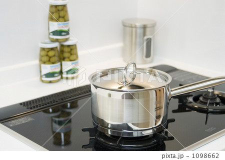 IHクッキングヒーターと鍋のあるオープンキッチンの風景