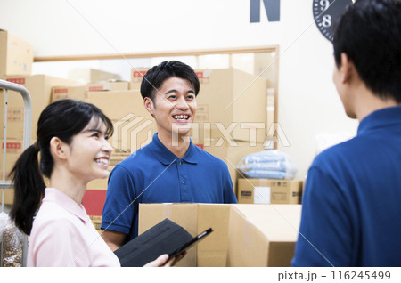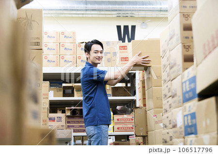 倉庫で働く若い男性