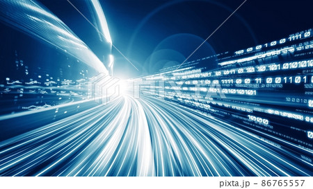 Digital data flow on road with motion blur to create vision of fast speed transfer