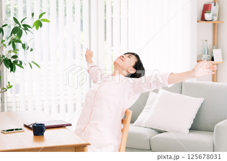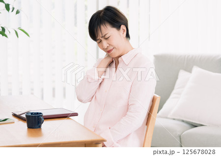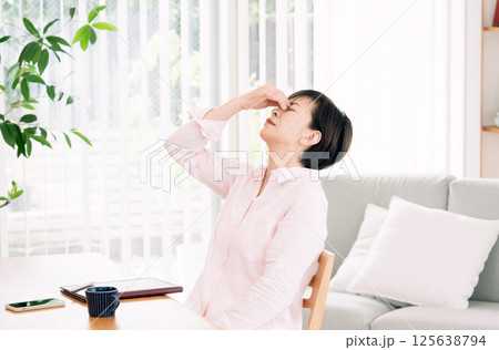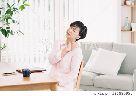 ナチュラルテイストなオフィスで悩むミドルの女性