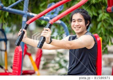 Man flexing arm in outdoor gym