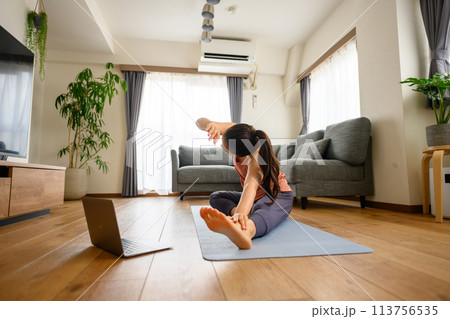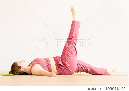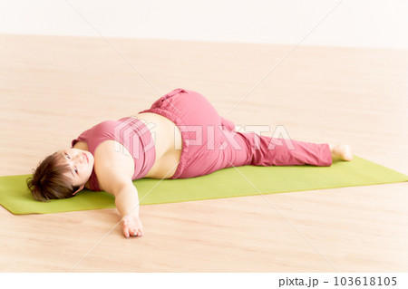 ヨガをするぽっちゃり体型の若い女性 プラスサイズモデル イメージ