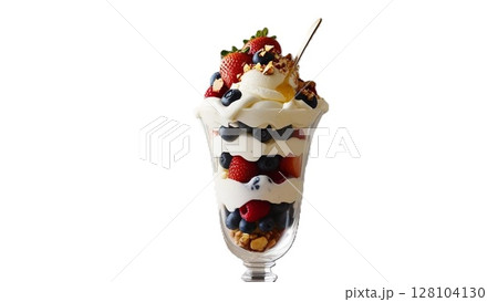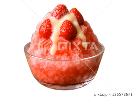 苺が乗ったガラス器のかき氷 氷イチゴ 背景透過