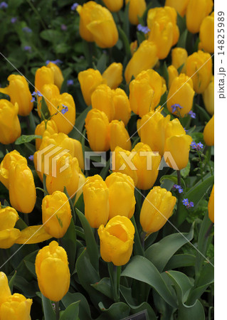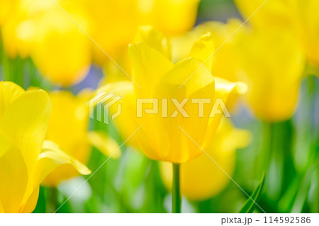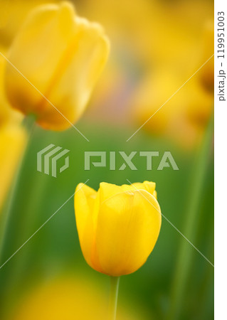 一面に咲く黄色いチューリップの花畑 ストロングゴールド