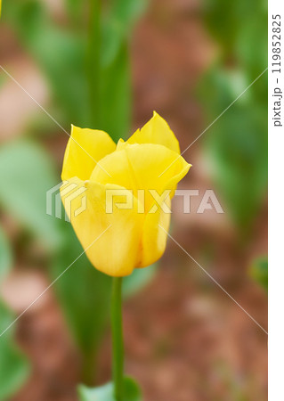 クラシカルな雰囲気の一輪の黄色いチューリップの花