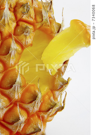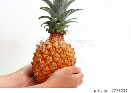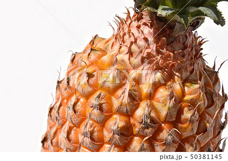 お中元やお歳暮にぴったりの高級フルーツ、沖縄産のスナックパインの白背景写真イメージ素材