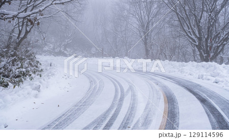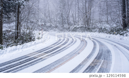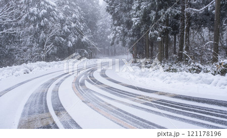 除雪が終わった雪道 アイスバーン(大山鏡ヶ成付近)