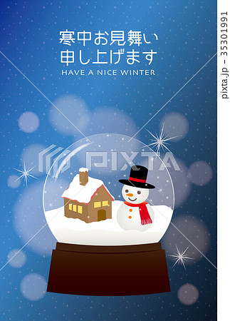 スノードームの寒中見舞いテンプレート