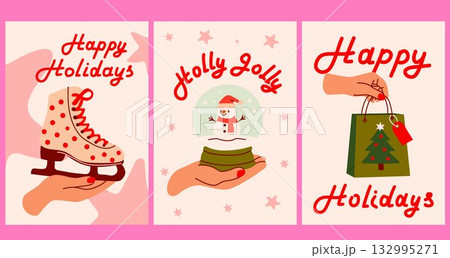 Merry Christmas, hand drawn illustrations, vertical Christmas cards in modern vintage style