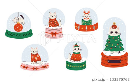 Cute Christmas Cats in Snow Globes Collection