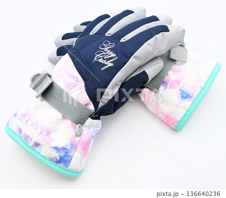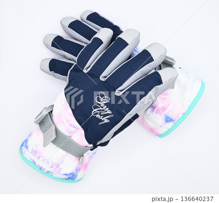 ジュニア用スキー手袋の白背景写真