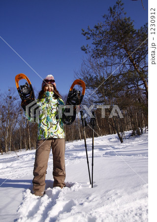 スノーシューの女性