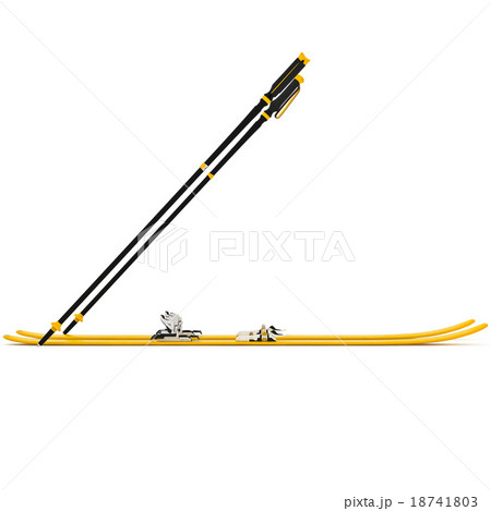 Skiing sports yellow, ski poles, front view