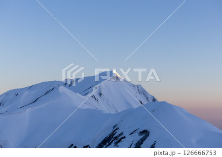 春の立山、蒸気漂う雪景と神秘の山岳風景、剱岳
