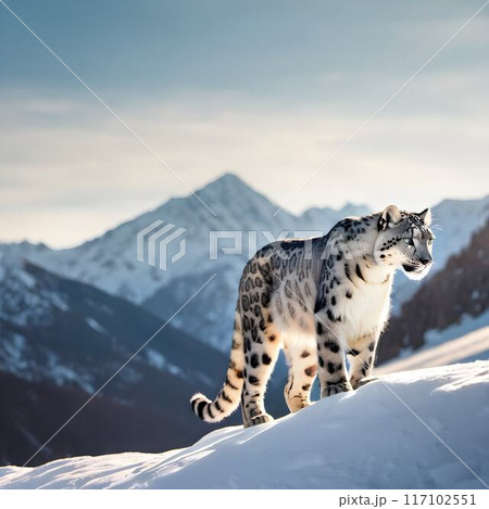 Mountain Majesty: Snow Leopard Silhouette in Soft Sunlight