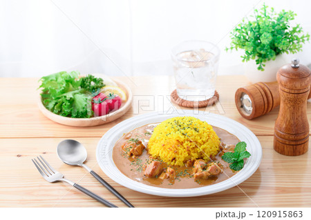 テーブルのスパイスチキンカレー