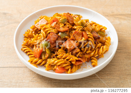 hamburg beef pasta or pasta with tomato sauce , red sauce pasta or red pasta