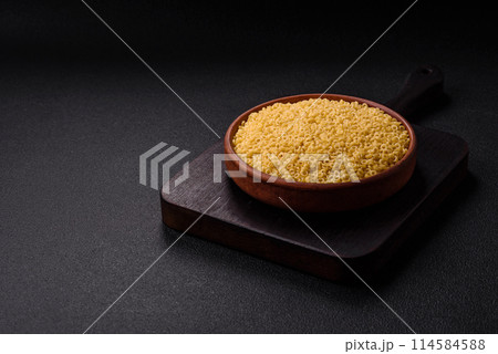 Raw anellini pasta from durum wheat with salt and spices