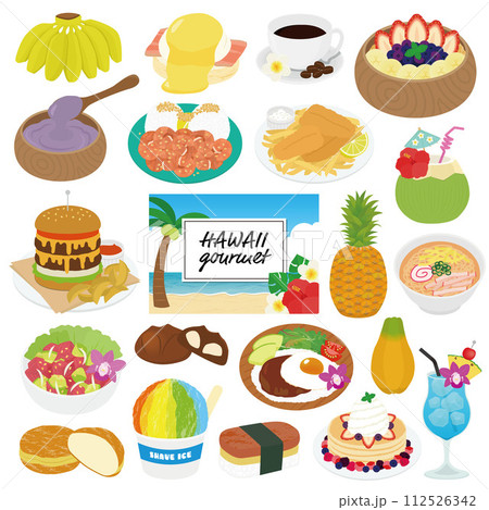 ハワイのグルメのイラストセット
