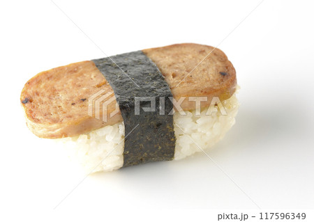 スパムむすびを白背景で撮影
