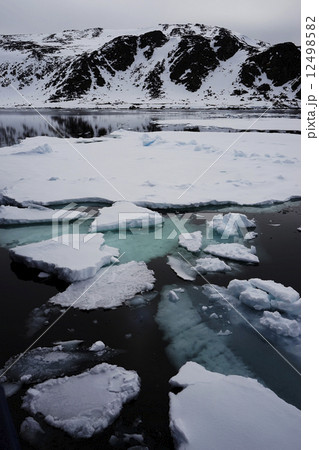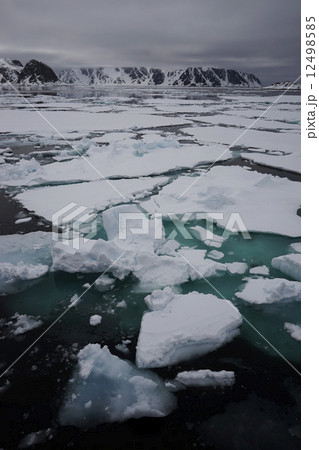 Two young wild polar bear cubs playing on pack ice in Arctic sea, north of Svalbard