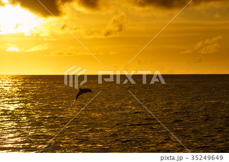 夕焼けの海 ハシナガイルカ 小笠原