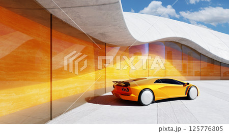 現代の自動車デザインに焦点を当てた都市の駐車シーン