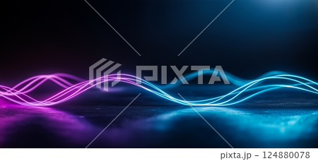 青とオレンジの光の抽象的な輝くリボン、PPT背景素材